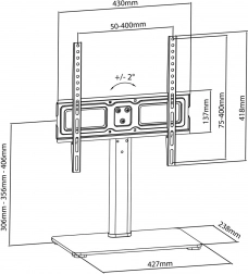 Njegova elegantna osnova iz kaljenega stekla nudi stabilnost in zanesljivost do 40 kg. S nedrsečimi blazinicami ščiti površino pred praskami. Stojalo ima 3 stopnje nastavitve višine (306/356/406 mm) za individualno prilagoditev višine zaslona vašim potrebam.