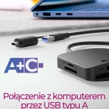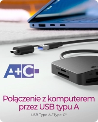 Univerzalna povezljivost: Naprava je opremljena z USB kabli Type-A in Type-C za večjo prilagodljivost in udobje. Prilagodite se različnim možnostim povezave brez potrebe po dodatnih adapterjih.