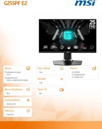Doživite igralno zabavo na novi ravni z monitorjem MSI G255PF. Z osupljivim LED zaslonom diagonale 24,5 palca in ločljivostjo Full HD boste postali del akcije. Zahvaljujoč obnovitveni frekvenci 180 Hz boste uživali v hitri in tekoči igri brez kakršnih koli zakasnitev.