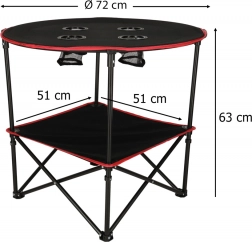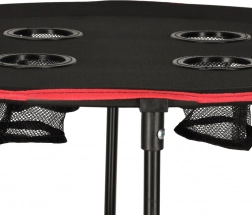 Poseben dizajn z odprtimi za pijače zagotavlja, da bo vaša pijača vedno pri roki, miza pa ostala stabilna. To je idealna izbira za tiste, ki cenijo udobje in praktičnost med kampiranjem, pikniki ali ribolovom. Njen izjemen videz in funkcionalnost jo naredita izstopajoč izdelek na trgu.