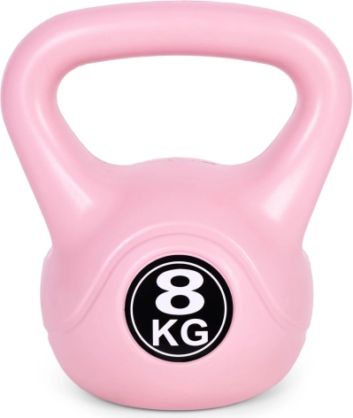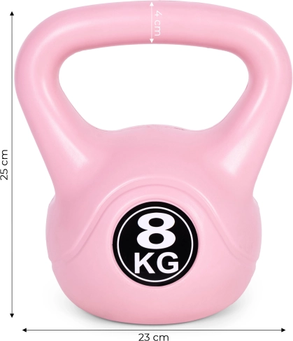 Odporna plastična površina je enostavna za vzdrževanje, notranje cementno jedro pa nudi stabilno težo. Kettlebell je primeren za domačo vadbo, krožne treninge in kot dopolnilo rehabilitacijskim vajam – brez potrebe po velikem prostoru.