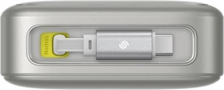 Praktični izvlečni USB‑C kabel imate vedno pri roki – brez potrebe po dodatni opremi. Skupaj z drugim USB‑C priključkom lahko polnite 2 napravi hkrati. Večnivojske zaščite (prenapetost, previsok tok, kratek stik, prenapolnitev in pregrevanje) ščitijo vaše naprave in samo powerbanko.