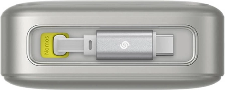 Vgrajen, izvlečni USB‑C kabel prihrani prostor v torbi in čas. Brez iskanja kablov – samo izvlecite in polnite, lahko tudi hkrati z drugim USB‑C priključkom.