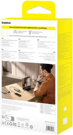 Ne dovolite, da vas omejuje prazna baterija. Kompaktna powerbanka BASEUS Free2Pull s kapaciteto 20000 mAh in močjo 65 W hitro napolni telefon, tabličnik in druga zařízení. Zahvaljujoč vgrajenemu izvlečnemu USB‑C kablu in dodatnemu USB‑C priključku lahko preprosto polnite dve napravi hkrati. Pregleden LED zaslon prikazuje preostalo energijo, napredne zaščite pa zagotavljajo varno polnjenje na poti in vsak dan.