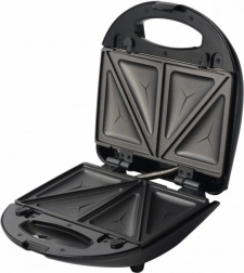 Za udobje in varnost poskrbijo termostat za optimalno temperaturo pečenja, svetlobne kontrolke stanja in pripravljenosti ter zaklepna zaponka na ročaju za enakomeren pritisk. Gumijaste nedrseče nogice držijo napravo trdno na mestu, toplotno izolirano ohišje pa se med delovanjem ne pregreva.