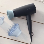 Zmogljiv sušilnik za lase PHILIPS z močjo 2100 W zagotavlja hitro in nežno sušenje vsak dan. Edinstven nastavek ThermoProtect meša topel in hladen zrak za stabilno temperaturo in zaščito las. Napredna ionizacija z do 20 milijoni ionov med enim sušenjem lase naredi gladke in sijoče. Z 6 nastavitvami temperature in hitrosti, funkcijo hladnega zraka, koncentratorjem in difuzorjem zlahka ustvarite volumen, valove in natančen styling.