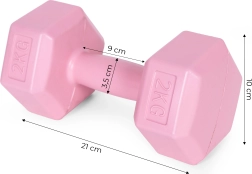 Vadite učinkovito doma z rožnatimi ročkami ModernHome. Set vsebuje 2 kosa po 2 kg, ki podpirata celostno krepitev celotnega telesa – rok, hrbta, trebuha, nog in zadnjice. Zaradi šesterokotne oblike so ročke stabilne in varne, zato jih lahko brez skrbi odložite med krožno vadbo ali med odmori.