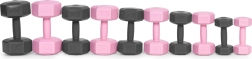 S temi rožnatimi ročkami 2×4 kg boste preprosto okrepili roke, hrbet, trebuh, noge in zadnjico. Stabilne šesterokotne glave preprečujejo kotaljenje po tleh in omogočajo varno oporo pri vajah v opori. Protidrsen, ergonomski ročaj zagotavlja zanesljiv oprijem in udobje tudi pri daljših serijah.