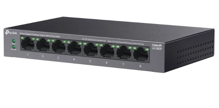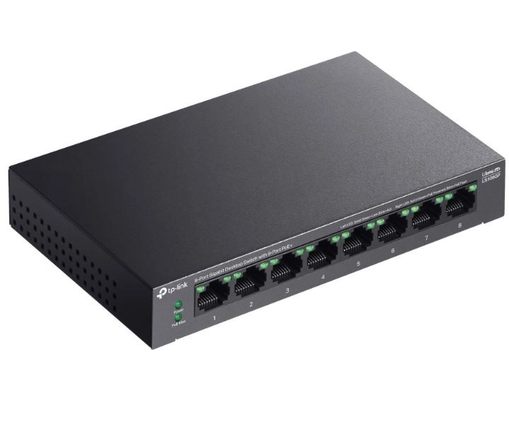 Sodobno in zmogljivo stikalo z 8 gigabitnimi vrati, idealno za mala in srednje velika podjetja, kjer je potrebna zanesljiva in učinkovita omrežna rešitev z možnostjo napajanja PoE.