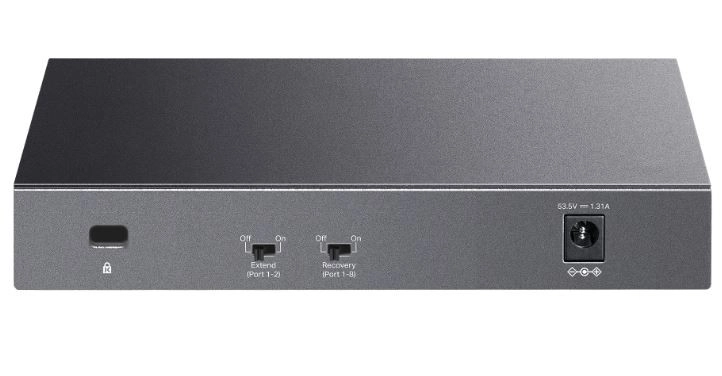 - Razširjeni način: Možnost prenosa PoE na razdaljo do 250 metrov, idealno za velike površine in postavitve videonadzornih sistemov.