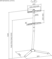 Podpira standarde VESA 200×200, 300×200, 400×200, 300×300, 400×300 in 400×400 (maks. 400×400) ter je združljiv z večino glavnih znamk TV.