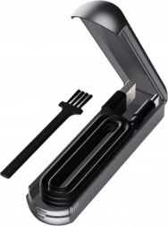 Praktična zasnova z ergonomskim oprijemom skriva predalček za čistilni čopič in USB‑C kabel, zato imate vse vedno pri roki. Štiri nadomestne glave podaljšujejo življenjsko dobo naprave in zagotavljajo stalno čist rez brez dodatnih stroškov. Elegantna embalaža navduši kot stilsko darilo.