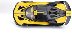 Odkrijte zvesto repliko revolucionarnega supersporta BUGATTI BOLIDE v precizni izvedbi. Kovinska die-cast karoserija, realistična razmerja in kontrastno rumeno-črno lakiranje poudarjajo agresivne aerodinamične linije, zaradi katerih model izstopa v vsaki zbirki.
