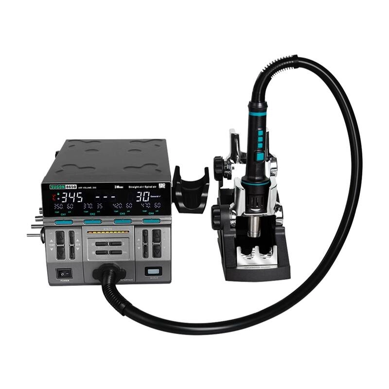 Sugon 8650 je sodobna vročevodna spajkalna postaja, opremljena s tremi delovnimi načini, ki omogočajo prilagoditev različnim nalogam spajkanja. Ergonomično zasnovana za lažje delo, ta postaja ponuja digitalni zaslon z možnostjo natančnega nastavljanja parametrov.