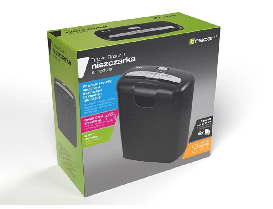 TRACER Razor 2 zagotavlja zanesljivo in varno uničevanje običajne pisarniške dokumentacije v udobju doma. Široka vstopna reža in kapaciteta do 6 listov občutno pospešita delo, medtem ko rez na 6 mm trakove zagotavlja zaščito občutljivih informacij na ravni P2 (DIN 66399). Z možnostjo uničenja plačilnih kartic zaščitite tudi osebne podatke zunaj papirnih dokumentov.