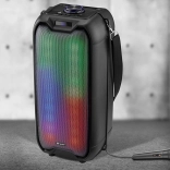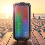 Tehnologija True Wireless Stereo (TWS) omogoča seznanitev dveh enakih zvočnikov in pridobitev prostorskega stereo zvoka brez zakasnitev. Karaoke način s priloženim mikrofonom bo zabaval vas in vaše prijatelje – idealna izbira za domače zabave in vrtne slavnosti. Vgrajen LCD zaslon poenostavi upravljanje in prikazuje informacije o viru ali postaji.