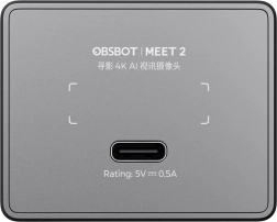 - OBSBOT Meet 2, adapter USB‑C na USB‑A, kabel USB‑C, zaščitni ščit, magnetni nosilec, uporabniški priročnik, garancijski list