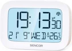 Digitalna budilka Sencor prinaša moderen dizajn in funkcionalnost v vsako spalnico ali pisarno. Velik zaslon zagotavlja lahko berljivost časa, datuma in temperature. Radio nadzor časa DCF77 poskrbi za točen čas brez potrebe po ročnih nastavitvah.