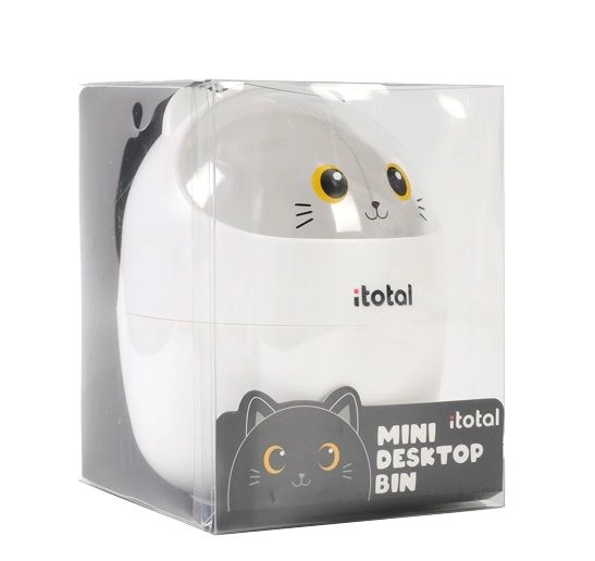 Ta beli mačji mini koš je zasnovan za vsakodnevne drobne odpadke – lističe, ovoje žvečilnih gumijev ali vatirane palčke. Zahvaljujoč kompaktnim meram 16 × 16 × 12 cm se prilega na vsako mizo in ne zasede dragocenega prostora. Minimalističen dizajn z ljubkim mačjim obrazom poživi vaš delovni kotiček in spodbuja red.