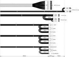 Komplet vključuje obsežen nabor priključkov, vključno z 20+4-pin MPC in EPS12V 4+4-pin priključkom, za brezhibno integracijo z vašim sistemom. Dolgi 450 mm ploski kabli omogočajo lažjo namestitev v katerem koli ohišju. Optimizirano hlajenje je zagotovljeno z 12 cm ventilatorjem, ki ohranja nizko raven hrupa tudi pri polni obremenitvi.