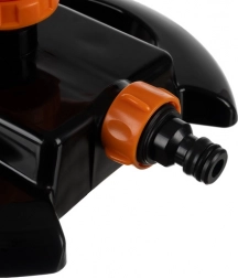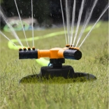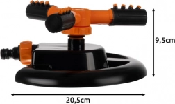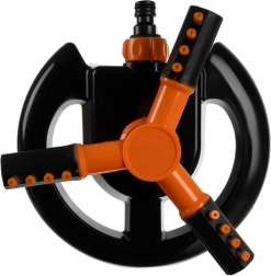Tri vrtljive roke z 12 šobami razpršujejo vodo v vse smeri. Gladko vrtenje za 360° zagotavlja enakomerno zalivanje tudi členjenih površin brez potrebe po spreminjanju položaja zalivalnika.