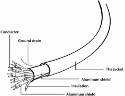 Podroben prikaz predstavlja notranjo strukturo kabla, vključno z vodnikom, izolacijo in zaščitnim plaščem.