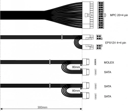 Vključuje 4-pin, MOLEX, tri SATA in univerzalni 24-pin konektorje.