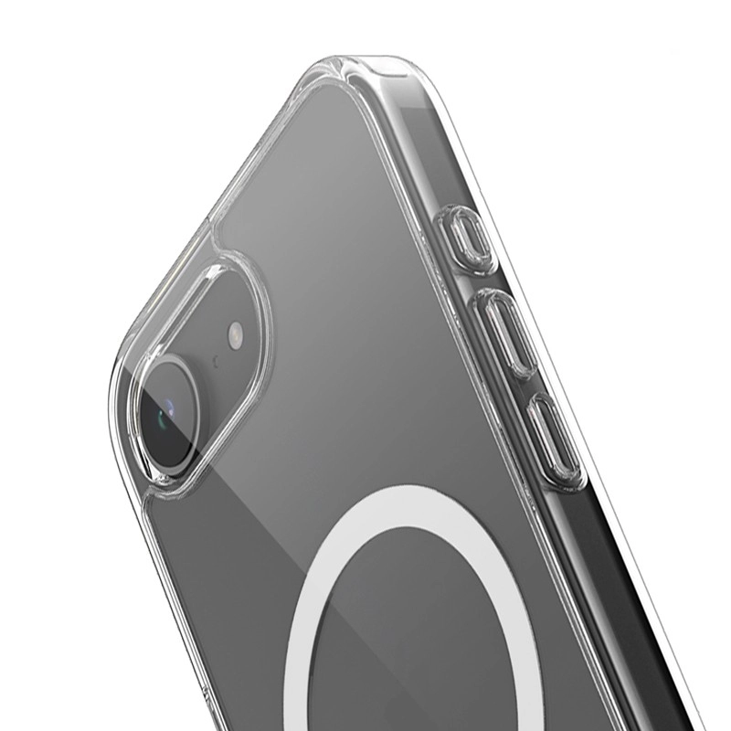 Ovitek Clear MAG ščiti vaš iPhone 16 in zagotavlja popolno združljivost z dodatki MagSafe. Magnetni obroč je sestavljen iz 39 manjših magnetov, ki omogočajo enostavno priklop polnilnikov in drugih dodatkov. Dvignjeni robovi okrog zaslona zagotavljajo, da je vaš telefon varen, ko ga odložite z zaslonom navzdol, in zmanjšujejo tveganje za poškodbe stekla pri padcu.