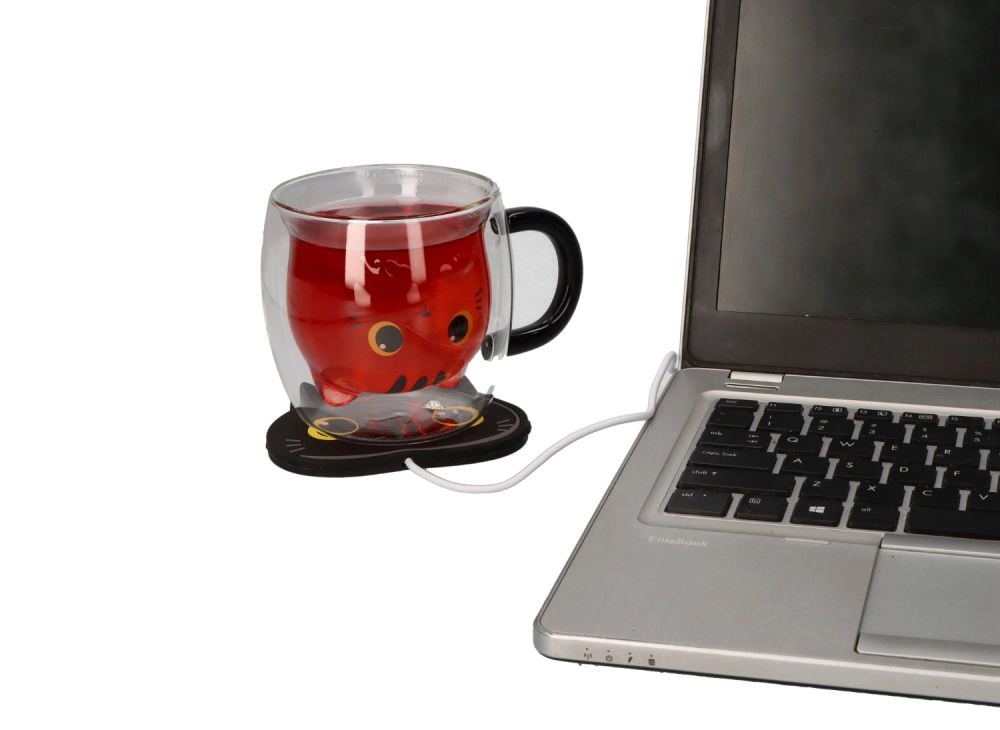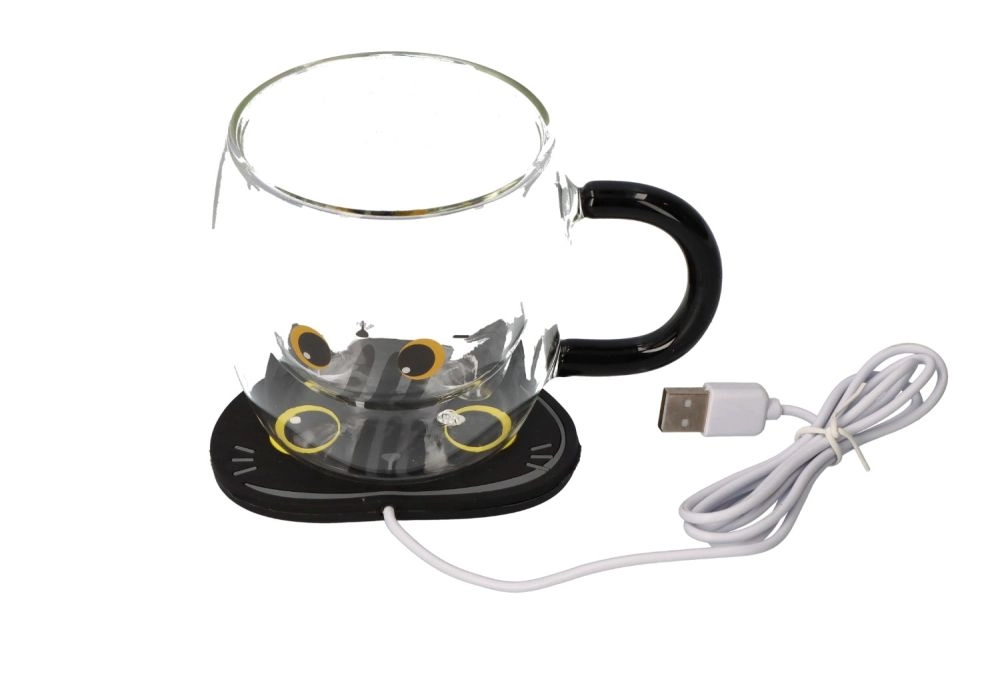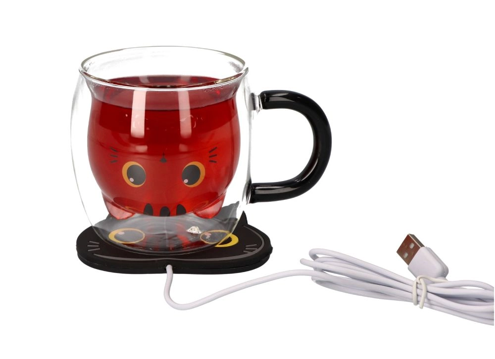 Praktični USB grelnik pijač ohranja vašo pijačo dlje toplo med delom za računalnikom, študijem ali počitkom. Minimalističen črn podstavek z mačjim dizajnom in prozorna skodelica z mačjim motivom bosta razveselila ljubitelje živali in stilskih dodatkov. Preprosto ga priključite v USB in v nekaj minutah je grelnik pripravljen.