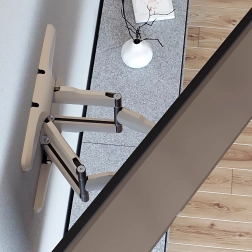 Omogoča nagib v razponu +2° do -10° in vrtenje do 120°, kar je idealno za zagotavljanje najboljšega kota gledanja z različnih mest v prostoru. Nosilec je izdelan iz robustnega jekla, ki zagotavlja varno namestitev.