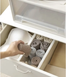 Organizator se prilagodi različnim velikostim predalov in omogoča učinkovito organizacijo predmetov.