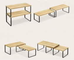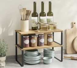 S tem kompletom polic boste svojo kuhinjo organizirali praktično in stilsko. Bambusov material zagotavlja trdnost in stabilnost, medtem ko kovinska opora skrbi za dolgo življenjsko dobo in trdnost.