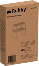 Ta bambusova kuhinjska polica Ruhhy nudi odpornost na vlago in ne vpija vonjav, kar jo naredi idealno za shranjevanje vaših začimb in živil. Eleganten dizajn v kombinaciji s črnim kovinskim okvirjem vaši kuhinji doda moderen in naraven videz.