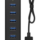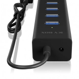 Praktičen in zmogljiv USB razdelilnik ICY BOX spremeni en priključek USB tipa A v sedem hitrih USB 3.0. Zahvaljujoč zunanjemu napajanju lahko hkrati poganja tudi energijsko zahtevne periferne naprave – od zunanjih diskov do čitalnikov kartic ali spletnih kamer – brez prekinitev in zmanjšanja zmogljivosti.