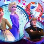 Na sliki srečate Elso, Anno, Olafa, Kristoffa in severnega jelena Svena – barvit prizor Sestrske pustolovščine bo navdušil vsakega oboževalca.