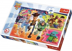 Ta kakovostna talna sestavljanka znamke TREFL prinaša priljubljene junake iz filma TOY STORY 4 v privlačni in barviti izvedbi. Zahvaljujoč 24 maxi koščkom je sestavljanje pregledno in enostavno, zato se lahko igre udeležijo tudi mlajši otroci.