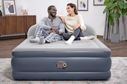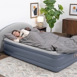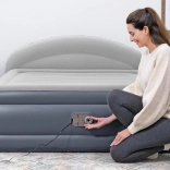 Z vgrajeno električno črpalko vzmetnico brez napora pripravite v nekaj minutah. Integrirano vzglavje LoungeLux poveča udobje pri branju in gledanju televizije, obodni rob pa telo varno drži na sredini. Po izpihovanju se vzmetnica kompaktno zloži v priloženo najlonsko torbo, zato je popolna za potovanja in varčno shranjevanje.