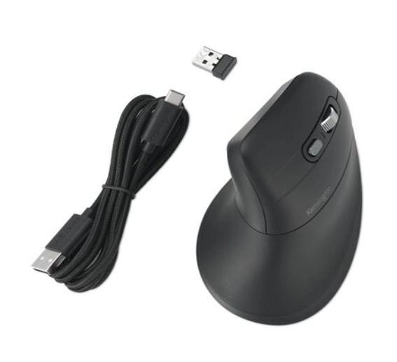 Ergonomska vertikalna brezžična miška Kensington Pro Fit ponuja udobje in produktivnost zahvaljujoč polni velikosti in ergonomskemu dizajnu. Podpira povezavo do treh naprav in je okolju prijazna zaradi uporabe recikliranih materialov.
