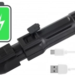 Vgrajeno polnilno baterijo udobno napolnite prek microUSB – iz powerbanke, računalnika, avtopolnilca ali klasičnega omrežnega polnilnika. Gumirano stikalo zagotavlja zanesljiv pritisk tudi z rokavicami. Lahka in kompaktna zasnova je odlična za nahrbtnik, avto in domačo opremo.