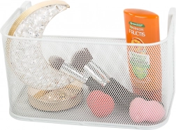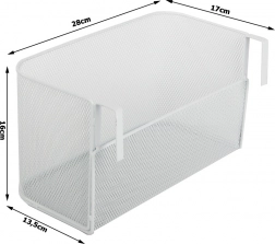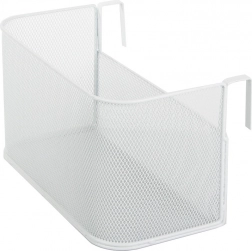 Elegantna bela viseča košara iz lakirane kovine razširi shranjevalni prostor povsod, kjer ga najbolj potrebujete. Fina mreža zagotavlja kroženje zraka in hitro sušenje, zato je primerna tudi za vlažne prostore, kot sta kopalnica ali kuhinja. Montaža je vprašanje sekund – košaro preprosto nasunete na rob police, vrat ali okvir postelje.