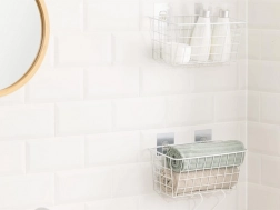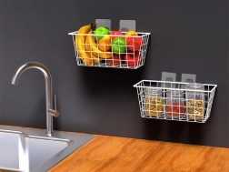 Samolepilne kljukice zanesljivo pritrdijo košaro na gladke površine brez orodja. Brez lukenj, brez nereda – le čista in hitra rešitev.