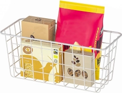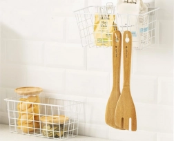 Elegantna in trpežna bela žičnata košara je pametna rešitev za vsakodnevno organizacijo. Preprosto jo prilepite na gladko površino s pomočjo samolepilnih kljukic – brez vrtanja, vložkov in nereda. Odprt dizajn podpira prezračevanje in odvajanje vlage, zato je idealna za sadje, zelenjavo, začimbe, kozmetiko ali čistila.