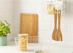 Shranjujte sadje, začimbe ali suha živila na višino in si sprostite delovno površino. Odprta mrežica zagotavlja pregled in kroženje zraka.