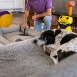 Posebna zasnova s tekstilnimi trakovi za učinkovito zajemanje živalskih dlak na oblazinjenih površinah.