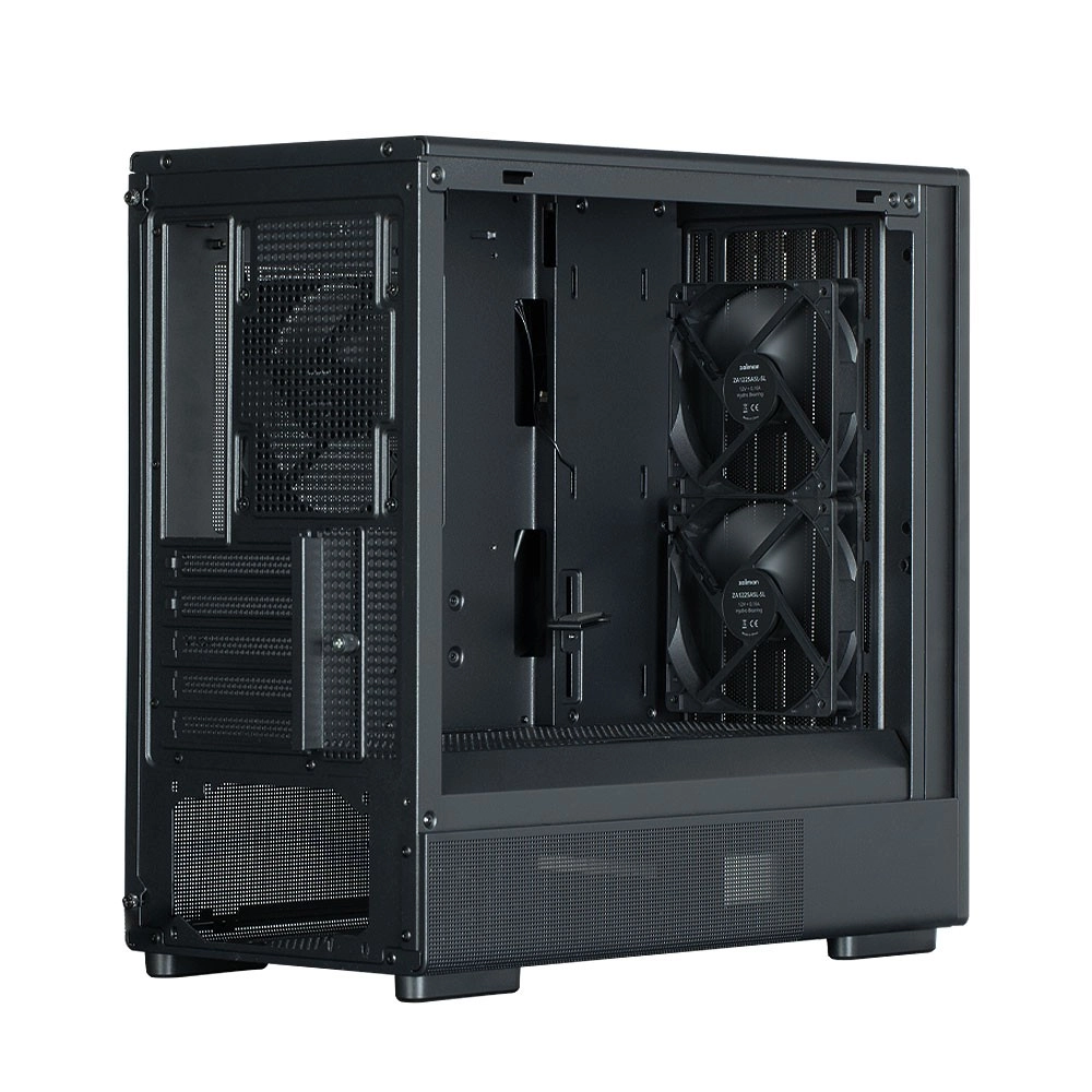 Neprekosljiv prezračevalni potencial zagotavljata zgornji in sprednji panel z lesenimi in mrežastimi elementi, ki izboljšujejo ventilacijo in dodajajo dodaten pretok zraka v sistem. Magnetni prašni filtri ščitijo komponente in zagotavljajo nemoten pretok zraka z učinkovitim lovljenjem prahu.