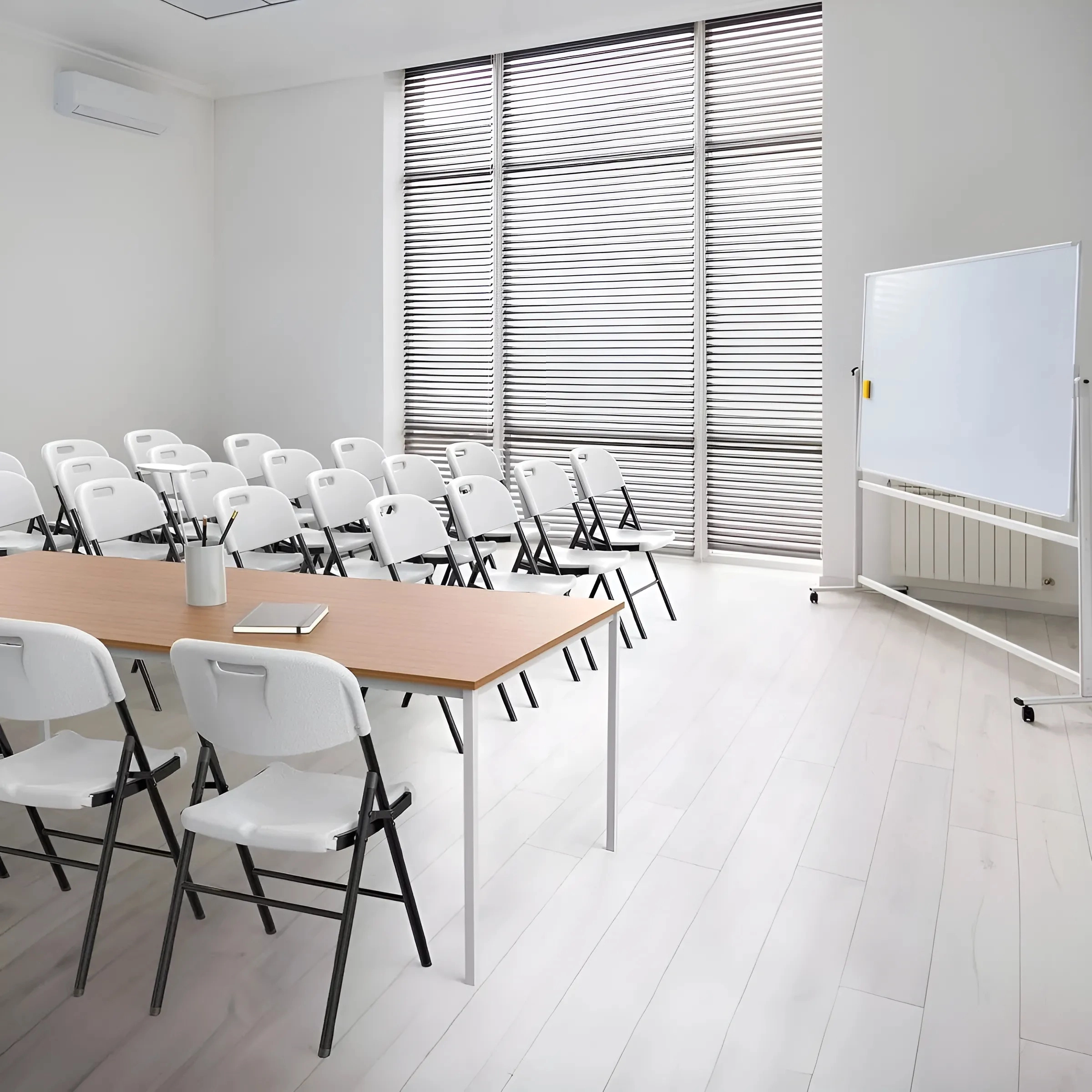 Set zložljivih stolov ModernHome je univerzalna izbira za različne dogodke, bodisi za zunanje zabave ali notranje konference. Sodoben dizajn stolov zagotavlja, da se prilegajo tako pisarnam kot vrtovom, zaradi svoje praktičnosti pa se zlahka uvrstijo med priljubljene predmete v interierju. Sedež in naslon sta posebej profilirana za optimalno oporo hrbtu in udobje pri sedenju.