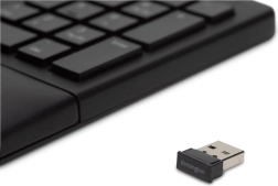 Ergonomska brezžična tipkovnica je zasnovana tako, da zagotavlja udobno razporeditev rok med delom na računalniku. Zaradi razdeljene in pravilno nagnjene površine z možnostjo nastavitve naklona ter vgrajenega naslona za zapestja tipkovnica zagotavlja naraven položaj rok.