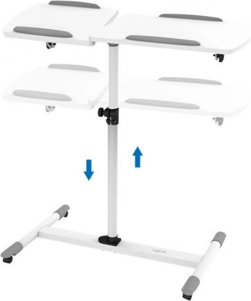 Univerzalna mobilna miza za projektor in prenosnik z nosilnostjo do 10 kg ponuja nemoteno nastavljanje višine, nagib plošče do 35° in štiri kolesca za enostavno premikanje. Stabilna jeklena konstrukcija in nedrseči zadrževalniki varno držijo vaše naprave na mestu pri predstavitvah ter pri delu sede ali stoje.