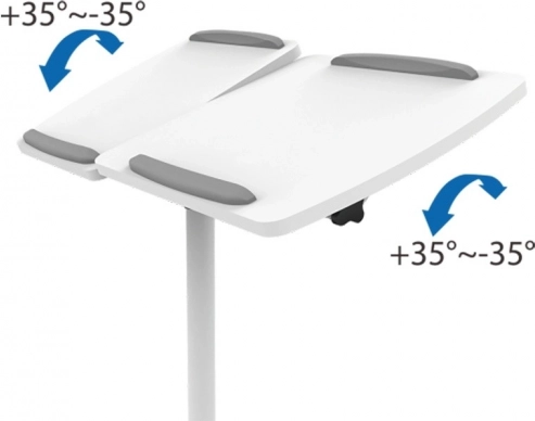 Nagibna delovna površina omogoča ergonomsko nastavitev kota do 35° navzgor in navzdol. Varnostni zadrževalniki in nedrseči elementi preprečujejo drsenje opreme, zato se lahko osredotočite na popolno predstavitev.