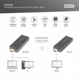 Uživajte v ostri sliki in čistem zvoku brez kablov. Ta komplet oddajnika in sprejemnika brezžično prenaša HDMI signal v ločljivosti do 4K/30 Hz na razdaljo do 30 metrov (v neposredni vidljivosti). Idealno za priklop prenosnika, set‑top boxa ali predvajalnika na TV, projektor ali monitor.
